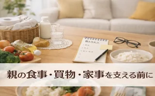 食事・買い物・家事の支え 親の食事・買い物・家事の支え方を整理|暮らしの負担が増える前に確認したいこと 親の食事や買い物、家事が少し気になり始めたときに、まず何を確認すればよいかをやさしく整理。まだ介護ではない段階でも、暮らしの負担を見逃さず、落ち着いて全体像をつかむための入口記事です。 2026.03.28 食事・買い物・家事の支え
